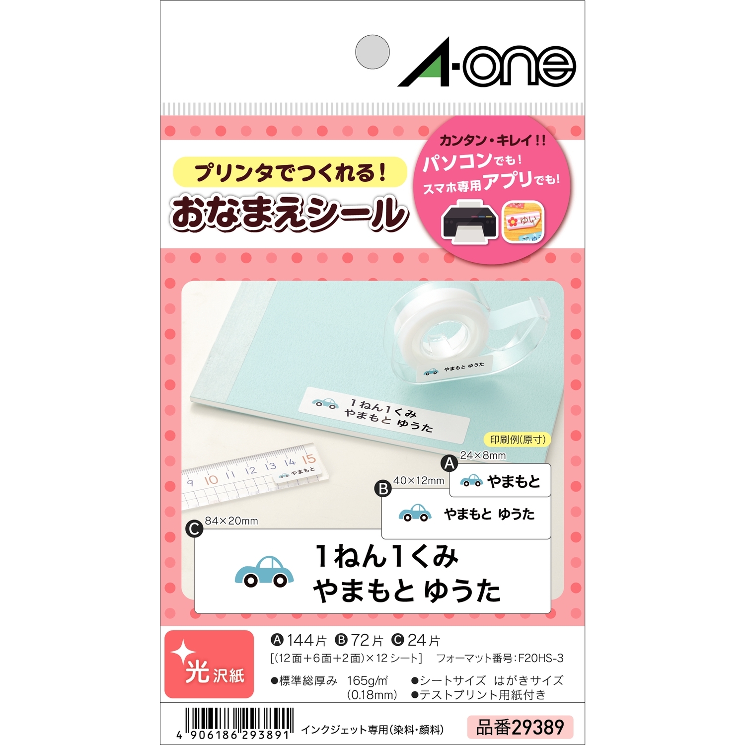 お名前シール 多面付 水に強い光沢白無地フィルムタイプ