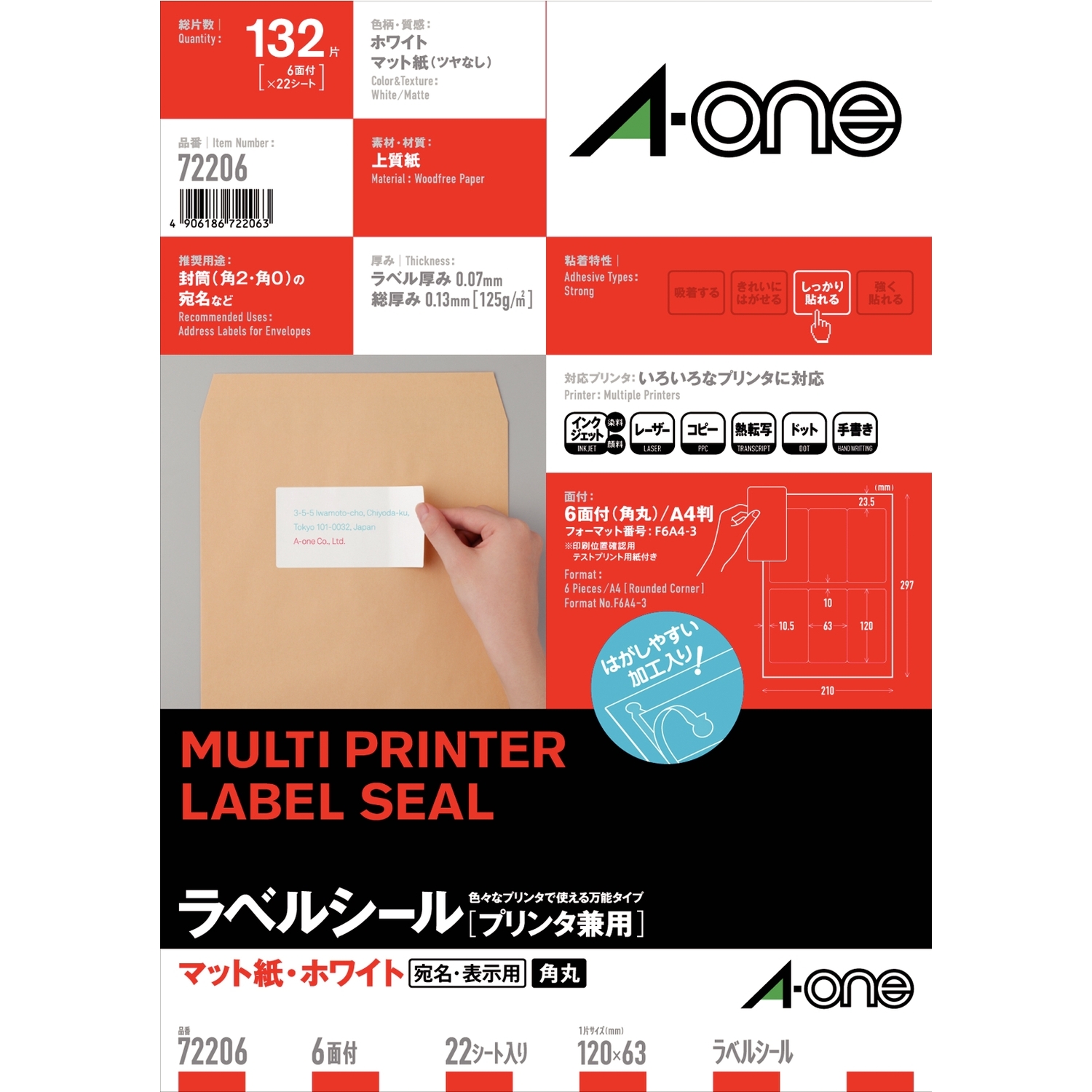 マット紙・ホワイト A4 6面 四辺余白付 角丸